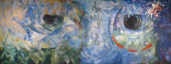 Under Fat Moon Dreaming, 2003, Latex house paint on drywall, 12′ x 32′