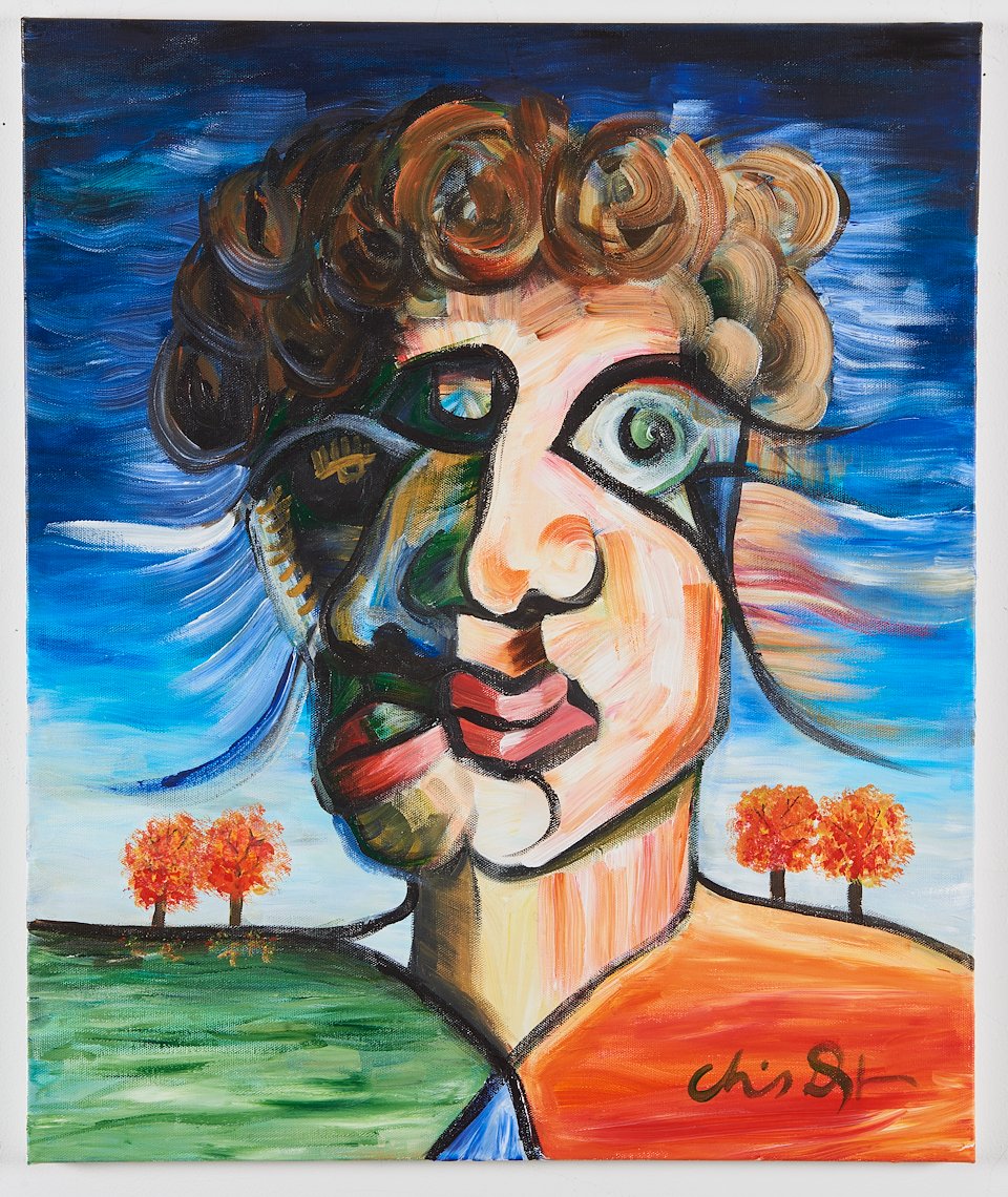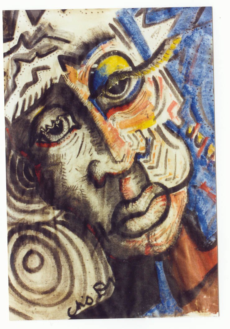 Self Portrait, 1985, 9"x12", acrylic on canvas