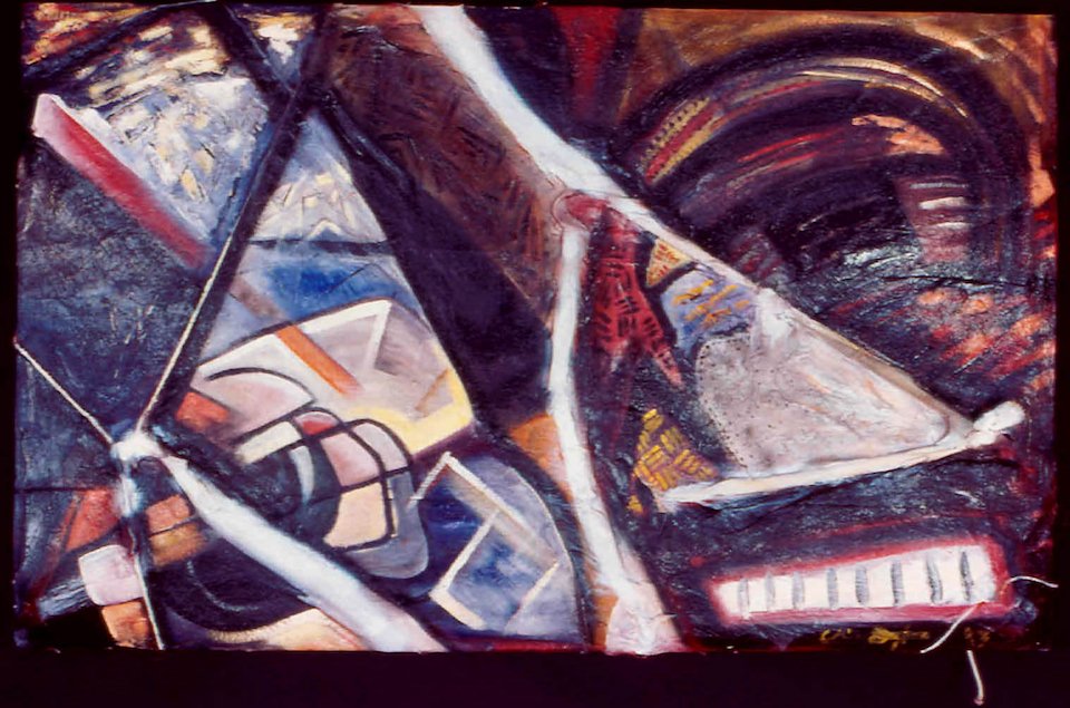 Bound, 1994, 36"x24" spray paint, acrylic, latex house paint, cement, rope, canvas